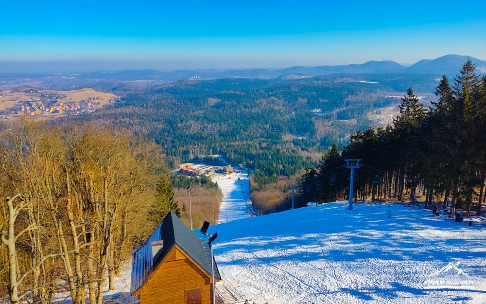 Dzikowiec Wielki to drugi co do wysokości szczyt w Masywie Dzikowca i Lesistej Wielkiej w Górach Kamiennych. Dzikowiec Wielki jest dziś znany z wznoszących się na jego szczycie dwóch wspaniałych wież widokowych, co czyni go popularnym miejscem wycieczek pieszych w Sudetach. Najnowsza wieża widokowa na Dzikowcu Wielkim została otworzona dla turystów dość niedawno, bo na początku 2025 roku i od razu stała się hitem wśród atrakcji turystycznych i wież widokowych Dolnego Śląska. Tuż obok nowej wieży widokowej na Dzikowcu Wielkim czeka też na was druga, nieco starsza drewniana wieża widokowa, oraz dodatkowe atrakcje w postaci licznych tras do zjazdów rowerowych MTB, lokalny stok narciarski oraz wygodna kolej krzesełkowa z Boguszowa-Gorców. Dzięki nowej wieży widokowej na Dzikowcu Wielkim, oraz łatwym szlakom turystycznym prowadzącym na ten szczyt miejsce to stało się świetnym celem na rodzinny wypad w góry, połączony z podziwianiem fantastycznych panoram. W tym artykule znajdziecie opis wycieczki na Dzikowiec Wielki z Boguszowa-Gorców, oraz informacje na temat zwiedzania obu wież widokowych na Dzikowcu Wielkim. Zapraszamy!