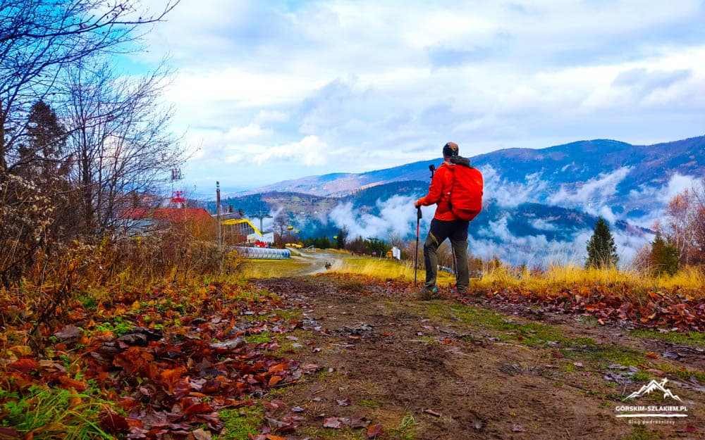 Wycieczka na Halę Jaworzyna pod Skrzycznem ze Szczyrku to świetna opcja na krótką wyprawę w Beskid Śląski dla każdego. Wycieczkę na Halę Jaworzyna polecamy wam rozpocząć przy dolnej stacji kolejki krzesełkowej COS na Skrzyczne, gdzie swój początek ma nieco ponad trzy kilometrowe, dość strome podejście zboczem Skrzycznego. Po dotarciu w okolice dolnej stacji kolejki krzesełkowej na Skrzyczne, aby dostać się na niebieski szlak na Halę Jaworzyna odbijcie z głównej ulicy Myśliwskiej w prawo, w wąską odnogę ulicy Dębowej. Tutaj na słupku parkingowym przywitają was oznaczenia niebieskiego szlaku turystycznego, który jeszcze przez kilkadziesiąt metrów będzie prowadził was po asfalcie. Po chwili asfalt ustąpi jednak miejsca leśnej ścieżce i rozpocznie się już całe główne podejście ze Szczyrku na Halę Jaworzyna. Pierwszy kilometr wspinaczki niebieskim szlakiem to głównie pokonywanie bocznej części tutejszego stoku narciarskiego. Szlak na Halę Jaworzyna jest poprowadzony tu w taki sposób, że nawet wybierając się na wycieczkę w okresie zimowym turyści i narciarze nie przeszkadzają sobie nawzajem. Na tym odcinku szlaku ścieżka prowadząca na Halę Jaworzyna usłana jest sypkimi odłamkami skalnymi, oraz gęsto porastają ją grube korzenie drzew. Przygotujcie się zatem na wylewanie tu nieco większej ilości potu na czoło. Mniej więcej w połowie drogi do celu leśna ścieżka wyprowadzi was pod osiedle o nazwie „Hondraski”, gdzie przejdziecie obok kilku posesji mieszkalnych. Gdy odwrócicie się tu do tyłu, za waszymi plecami zaczną pojawiać się już pierwsze fajne widoki na szczyt Klimczoka, Magury i Trzech Kopców. Kiedy miniecie osiedle mieszkaniowe, do celu wycieczki pozostanie wam już do przejścia jedynie 600 metrów drogi. Po około 20-30 minutach dalszej wspinaczki w górę niebieski szlak wyprowadzi was już prosto na Halę Jaworzyna pod Skrzycznem.