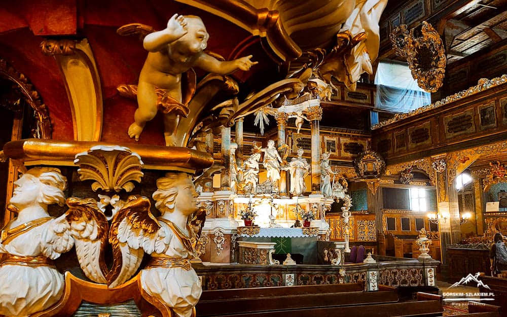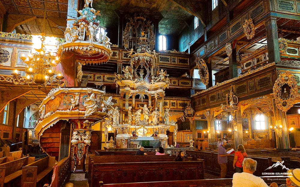 Kościół Pokoju w Świdnicy to wyjątkowy zabytek sakralny na Dolnym Śląsku, który od wielu lat przyciąga do siebie turystów oraz wiernych z całego świata. Kościół Pokoju w Świdnicy to świątynia parafii Kościoła Ewangelicko-Augsburskiego która jest jednym z trzech tego typu obiektów na Dolnym Śląsku i która wpisana jest dziś na listę światowego dziedzictwa UNESCO. Wycieczka do Kościoła Pokoju w Świdnicy rozpoczyna się przy ulicy Kościelnej, gdzie odnajdziecie główne wejście w postaci białej bramy, za którą znajdują się ścieżki prowadzące do wnętrza budynku. Białą Bramę do Kościoła Pokoju w Świdnicy odnajdziecie bez trudu, gdyż mocno wyróżnia się ona na tle całego otoczenia. Dodatkową wskazówką, która podpowie wam że kierujecie się we właściwe miejsce będzie mijany po prawej stronie wejścia na kościoła „Lawendowy Domek” oraz znajdująca się po prawej stronie wejścia restauracja „7 Niebo”. Po przekroczeniu białej bramy odnajdziecie za nią brukowaną ścieżkę, która zaprowadzi was prosto pod główne wejście do Kościoła Pokoju w Świdnicy. Zanim jednak udacie się na zwiedzanie wnętrza zabytku, warto obejść najpierw cały kościół dookoła, aby móc zobaczyć jego wspaniałą szkieletowo – ryglową konstrukcję. Cały budynek Kościoła Pokoju w Świdnicy wykonany został bowiem z drewnianych słupów i belek ustawionych względem siebie pod kątem prostym, tworzące mocny szkielet nośny. Budynek kościoła został ponadto wzniesiony w systemie szachulcowym jako budowla centralna, oraz wybudowany został na planie krzyża greckiego. Patrząc na Kościół Pokoju w Świdnicy z zewnątrz można zatem odnieść wrażenie, że jest to dość skromna świątynia. Wejdźmy jednak do jego wnętrza i przekonajmy się, czy tak jest w rzeczywistości.