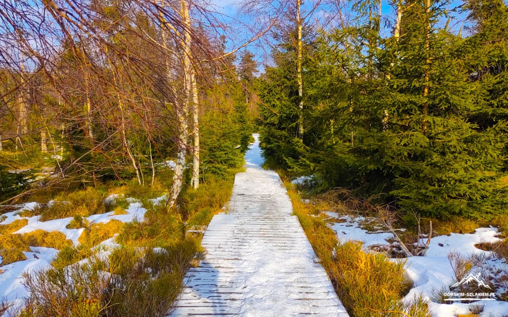 Ostatnim etapem wycieczki na Lustrzaną i Ptasią Górę w Górach Stołowych jest marsz przez Długie Mokradło i zwiedzanie Błędnych Skał. Długie Mokradło w Górach Stołowych to obumarłe torfowisko wysokie (tzw. mszar) z dostępem tylko do wód opadowych, które rozwinęło się na terenach masywu Skalniaka na Ptasiej Górze. Przechodząc przez teren Długiego Mokradła zobaczycie tu rosnące przy ścieżkach unikatowe mchy i rośliny zwane torfowcami. Aby turyści mogli przejść przez torfowisko suchą stopą, zbudowano tu specjalne drewniane kładki. Kładki te ułożone zostały mniej więcej na wysokości 50 centymetrów od powierzchni torfu i przechodzą one praktycznie przez sam środek Długiego Mokradła. Odcinek ścieżki edukacyjnej na Długim Mokradle ma długość około 300 metrów i pokonuje się go w około 5 minut. Po zwiedzaniu mokradeł na Ptasiej Górze czeka was jeszcze około 15 minut marszu trasą ścieżki przyrodniczej, po czym wyjdziecie już prosto na skrzyżowanie szlaków pod Błędnymi Skałami. Labirynt Błędnych Skał to jednak z największych atrakcji Gór Stołowych i miejsce, które koniecznie musicie odwiedzić. Więcej na temat tej atrakcji dowiecie się w naszym osobnym artykule: Błędne Skały w Górach Stołowych. Po zwiedzaniu wszystkich atrakcji na trasie wycieczki, na Lisią Przełęcz polecamy wam wrócić czerwonym szlakiem turystycznym, który jest jednym z odcinków Głównego Szlaku Sudeckiego. Szlak ten odnajdziecie tuż obok wyjścia z labiryntu Błędnych Skał i poprowadzi was on w stronę Zielonej Drogi, szczytu Pustelnik (790 m. n.p.m.) i obok masywu Szczelińca Wielkiego prosto do Karłowa. Piękne widoki w drodze powrotnej są tu gwarantowane. Polecamy!