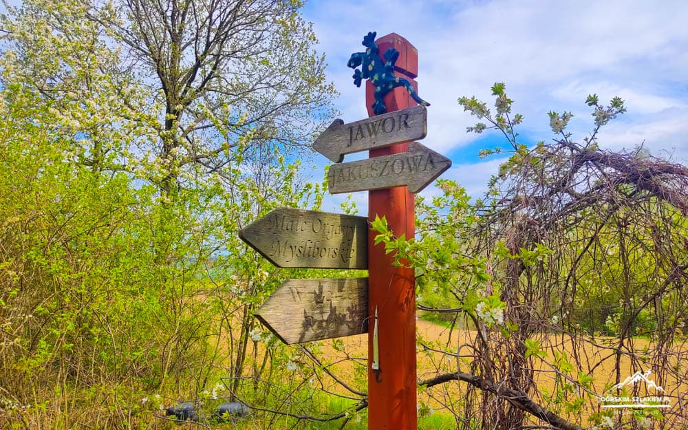 Odcinek żółtego szlaku z Myśliborza na górę Rataj ma długość jednego kilometra i pokonuje się go w około 20-30 minut spokojnym, spacerowym tempem. Po około 30 minutach marszu szlak wyprowadzi was pod rozdroże pod Ratajem, gdzie szlak żółty krzyżuje się z oznaczoną kolorem czerwonym ścieżką edukacyjną. W tym miejscu musicie odbić w prawo na wąską leśną ścieżkę i po kolejnych pięciu minutach marszu wejdziecie już na teren dawnego kamieniołomu pod Myśliborzem, gdzie czekają na was Małe Organy Myśliborskie.