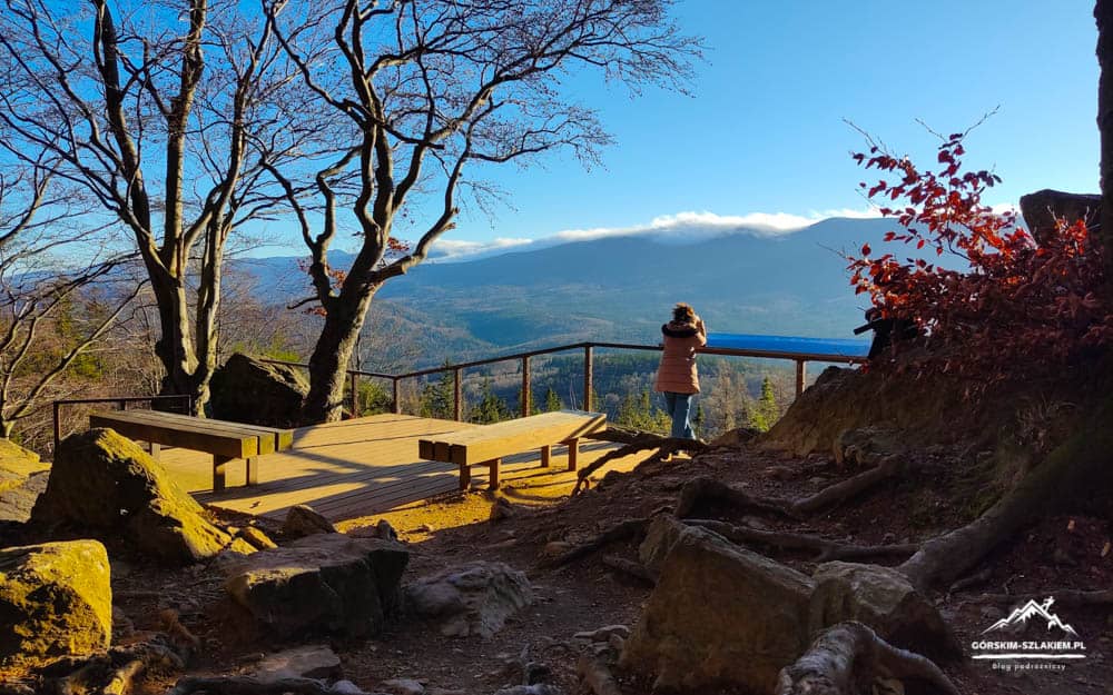 Zbójeckie Skały to popularne miejsce na rodzinną wycieczkę ze Szklarskiej Poręby, z ciekawym punktem widokowym. Zbójeckie Skały znajdują się na granicy miasta Szklarskiej Poręby i wsi Piechowice, w tak zwanym „Mniszym Lesie” w Górach Izerskich. Na Zbójeckie Skały zaprowadzi was bardzo łatwy i krótki żółty szlak turystyczny rozpoczynający się przy dworcu kolejowym Szklarska Poręba Dolna. Zbójeckie Skały tworzy dziś niewielka grupa skałek, na których wzniesiony został duży, drewniany taras widokowy. Wchodząc na taras widokowy na Zbójeckich Skałach będziecie mieli okazję zobaczyć stąd przepiękną panoramę Karkonoszy z ich najwyższym szczytem – Śnieżką. Przy dobrej pogodzie z platformy widokowej na Zbójeckich Skałach można również dostrzec ruiny średniowiecznego zamku Chojnik, oraz liczne szczyty w Rudawach Janowickich. Na Zbójeckich Skałach na turystów czeka też spora drewniana wiatka turystyczna i wyznaczonym miejscem na ognisko. Wejście na taras widokowy na Zbójeckich Skałach jest darmowe.