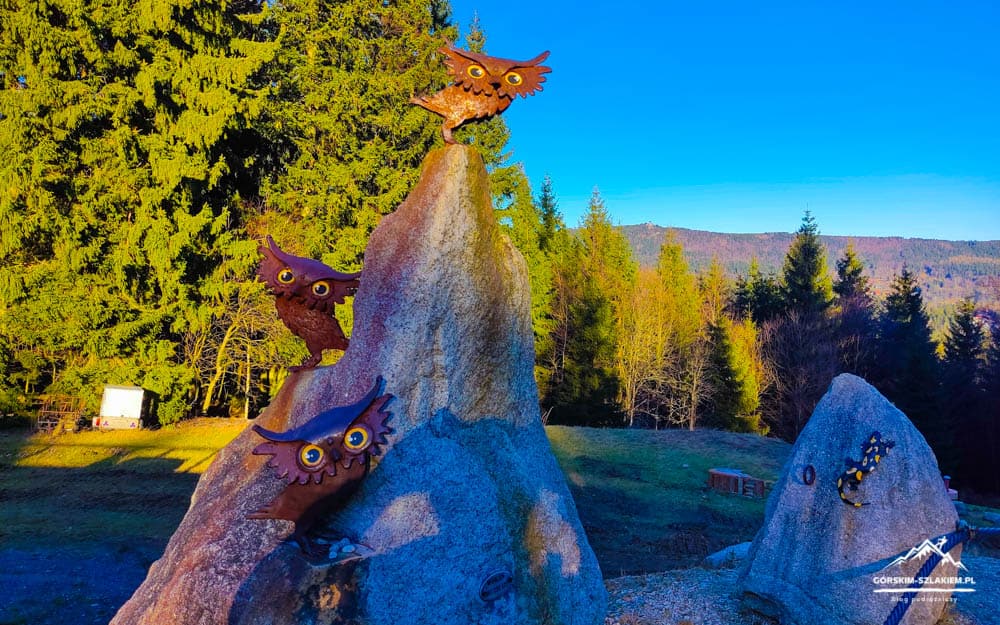 Spacerując po centrum Szklarskiej Poręby koniecznie odwiedźcie pomnik „Ducha Gór”. Pomnik Ducha Gór stanął na Skwerze Radiowej Trójki, który znajduje się przy skrzyżowaniu ulic Jedności Narodowej i ulicy 1 Maja. Rzeźba ta powstała na wzór najstarszego dostępnego wizerunku karkonoskiego Ducha Gór, autorstwa niemieckiego kartografa Martina Helwiga z 1561 roku. Pomnik Ducha Gór wzniesiony został w Szklarskiej Porębie w 2010 roku i jego zadaniem, oprócz robienia sobie fotek z turystami jest ochrona ukrytej pod nim kapsuły czasu. Karkonoski Duch Gór ma ją chronić przez kolejne 50 lat, aż do setnej rocznicy nadania Szklarskiej Porębie praw miejskich. Wokół pomnika Ducha Gór na murze Skweru Radiowej Trójki znajdziecie też odciski ust spikerów i dziennikarzy programu trzeciego polskiego radia. Stąd też miejsce to znane jest pod nazwą „Trójkowej Alei Gwiazd”. Zwiedzanie pomnika „Ducha Gór” w Szklarskiej Porębie jest możliwe przez całą dobę i całkowicie za darmo.