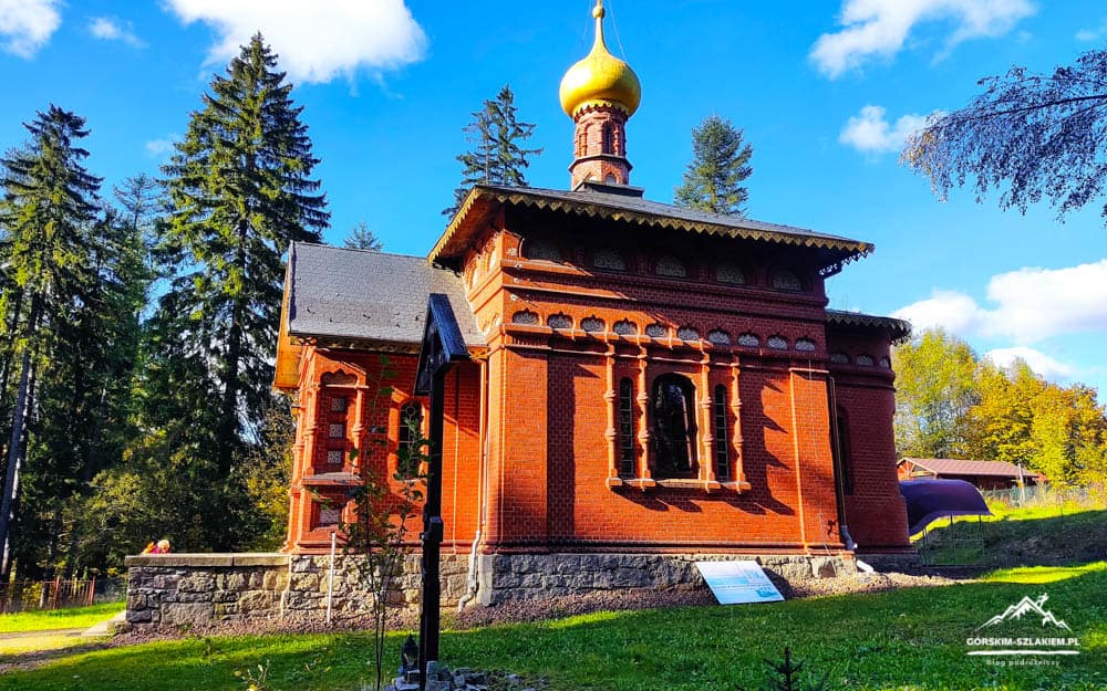 Jeżeli lubicie nieco dłuższe wędrówki po górach, połączone ze zwiedzaniem ciekawych miejsc to na Zamek Radosno wybierzcie się z Sokołowska. Sokołowsko to niewielka malownicza miejscowość położona nieco na południe od Wałbrzycha, leżąca w sercu Gór Kamiennych. Miasteczko to przez wiele lat było znanym na całą Europę uzdrowiskiem, w którym powstał nowatorski ośrodek leczenia gruźlicy. Co prawda Sokołowsko lata świetności ma już dawno za sobą, nadal jednak można zwiedzić tu wiele wyjątkowych miejsc i zobaczyć sporo ciekawych atrakcji. Wybierając się na Zamek Radosno z Sokołowska, zanim wyruszycie na szlak polecamy wam w pierwszej kolejności wybrać się na spacer po miasteczku. Zwiedzanie Sokołowska warto rozpocząć od zajrzenia do zabytkowej Cerkwi św. Michała Archanioła, która znajduje się na końcu ulicy Unisławskiej. Cerkiew św. Michała Archanioła w Sokołowsku powstała w celu ściągnięcia do miasteczka bogatych kuracjuszy z Rosji. Po zwiedzaniu budynku cerkwi koniecznie zajrzyjcie też do pobliskich ruin zameczku Friedenstein służącego niegdyś jako schronienie dla kuracjuszy wędrujących po szlakach Gór Kamiennych. Z innych ciekawostek w Sokołowsku warto zobaczyć też ruiny spalonego Sanatorium doktora Brehmera, budynek dawnego obserwatorium astronomicznego, sanatorium dr. T. Römplera, oraz zabytkowe budynki mieszkalne wzniesione wzdłuż głównej ulicy miasta. Po zwiedzaniu wszystkich atrakcji w Sokołowsku wróćcie następnie do centrum miasteczka na ulicę Główną, skąd wyruszycie na żółty szlak turystyczny prowadzący prosto na Zamek Radosno.